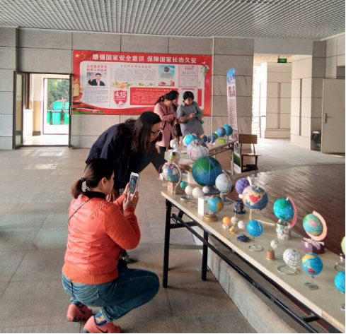 课间休息期间,两区老师们兴致勃勃地观摩了树人地理组老师们精心组织的地球仪模型制作比赛优秀作品展,很多老师都在仔细观察并拍照,对之连连称赞。