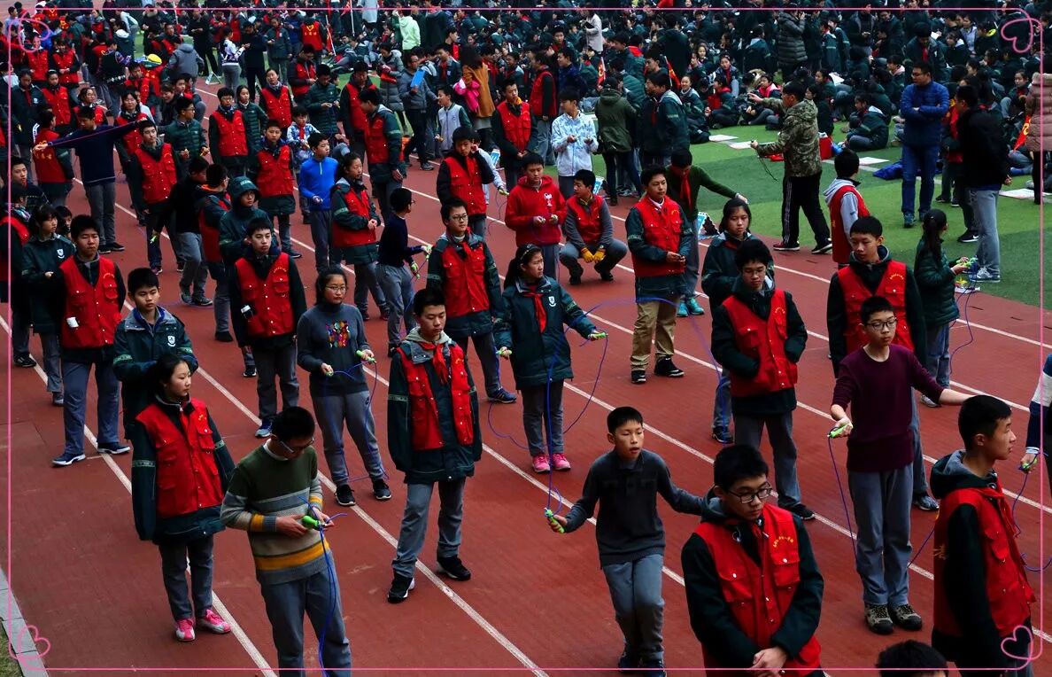 慰问结束之后,周化光副校长热情地宣布本次冬季三项运动会比赛开始。比赛还没开始,大家个个摩拳擦掌,精神面貌异常饱满,但每个人也都很紧张。哨声一响,只见绳子飞快地旋转,运动员们也进入了状态。在体育组全体教师和136名学生志愿者的用心地组织管理下,68个班的1496名运动员分别参加了2分钟双摇跳短绳、2分钟盘踢毽子和2分钟集体跳长绳的团体比赛和个人比赛。毽子比赛中,五彩斑斓的鸡毛毽上下、左右、一排排的跳动了起来,形成了一道亮丽的风景线。长绳比赛不仅考验个人的能力,更考验集体的配合,赛场上,同学们个个身轻如燕,穿梭如飞,阳光下,那一个个跃在空中的身影如同一个个轻盈的小精灵,组成了一幅阳光运动的精彩画面,赢得了观众们热情关注的目光和一声声喝彩。
