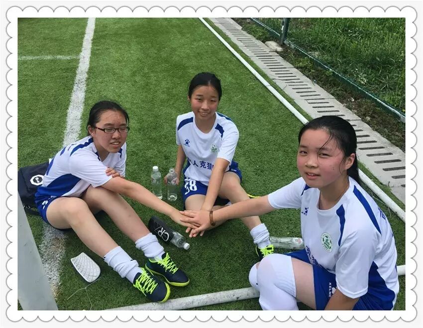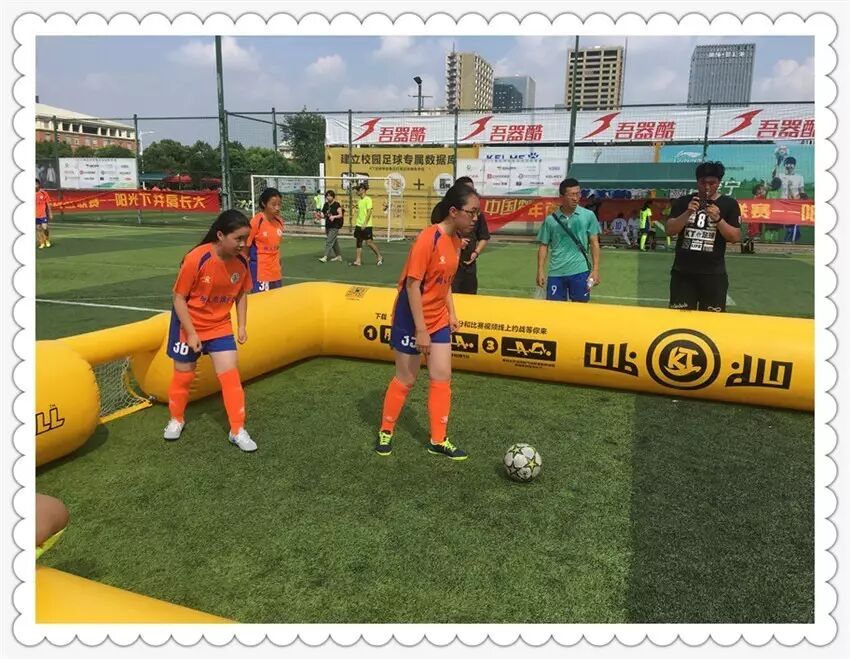 另外,在另一块场地上进行的女子KT足球赛中,初二(2)班的张靖涵、冯嘉胤、吴佳轩在仅仅进行了一周的训练后,比赛中积极参与、勇敢拼搏,以小组赛四战三胜的好成绩完成小组出线,在1/4决赛中力克建邺初级中学,成功跻身本次大赛四强。