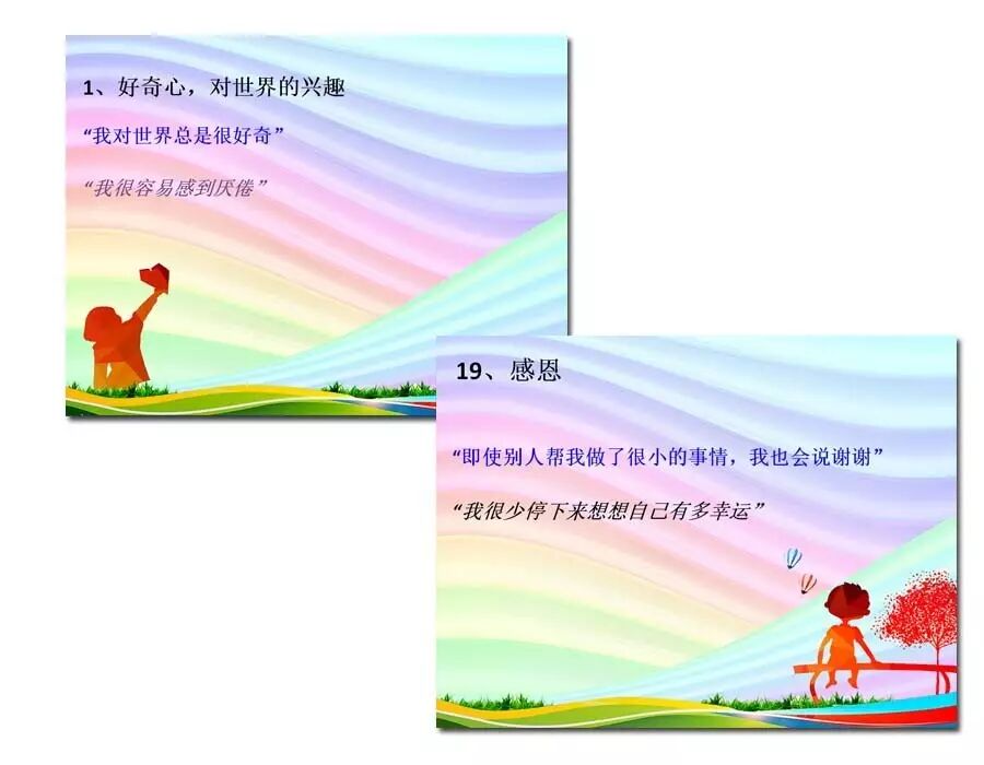 灿烂的回报。幸福是人生的追求,而获得幸福却是一种能力。孙小红老师从智慧与知识、勇气、仁爱、正义、节制、精神卓越六个方面分享了获得幸福的24个优势,并指出,“只有母亲自己对世界充满好奇,才能让孩子产生对世界的兴趣;只有母亲主动去帮邻居的忙,孩子才会对他人仁慈与慷慨。”