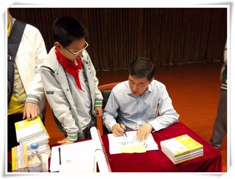 学生请张老师在其新书《身边汉字·花草字传》上签名