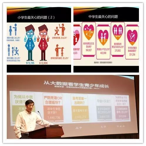 2015《教育部工作要点》提出:“推动学校特色发展,提升学校品质。”而学校品质提升就是“让儿童站在学校的正中央”,致力于以儿童为中心的教育,这就需要认识儿童的真实心理体验,研究儿童的身心发展规律,服务儿童的心理健康成长。学校教育如此,家庭教育也是如此。傅宏老师带着家长们一起走近儿童,通过大数据认识孩子真实心理,了解小学生、中学生、大学生最关心的问题,比如进入青春期的中学生最关心的问题包括“他是不是喜欢我?”“射手座男生/女生花心吗?”等等。由此,傅宏老师指出,一切为了孩子的发展就是顺应儿童自身发展规律,用毕生发展观看儿童。而从儿童毕生发展来说,家庭和同伴是其中两个重要的影响因素。在认识孩子的基础上,傅宏老师提出,服务孩子最重要的就是做到三点:突出预防教育;正面理解儿童;积极倾听儿童。
