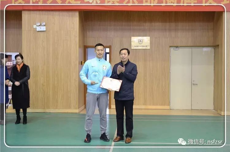 活动由“树人好声音”王磊老师主持,南京市教育局体卫艺处秦雯处长首先为本次活动致辞,她充分肯定了树人学校校园足球活动在近几年所取得的丰硕成果,她希望“树人足球俱乐部”的成立能为树人学校校园足球的发展插上强而有力的翅膀。接着由南京师范大学附属中学树人学校周化光副校长宣布南师附中树人学校树人足球俱乐部成立,并为吴曦先生颁发南师附中树人学校“校园足球推广大使”聘书及奖杯。然后树人学校足球队队长杨胡同学为现场观众和嘉宾讲解队徽的设计理念、展示树人足球文化。最后,伴着全场热烈的掌声,由南京市体育局葛菲副局长、南京市教育局体卫艺处秦雯处长、树人学校钱晓红书记和苏宁易购足球队队长吴曦先生共同揭下幕布,为揭牌仪式画上圆满的句号。