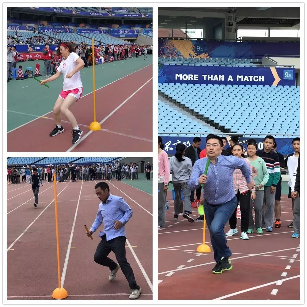 30×10的师生接力赛更是扣人心弦!当密集的鼓点响彻云霄,运动员们踏着飞旋的步伐,冲去,回转,冲刺,往复的步履寄托着团结的信念。此刻跑道上的老师已不仅仅是固守三尺讲台诲人不倦的师长,也成了称霸赛场的雄鹰。师生们将默契的配合从教室延展到了赛场!
